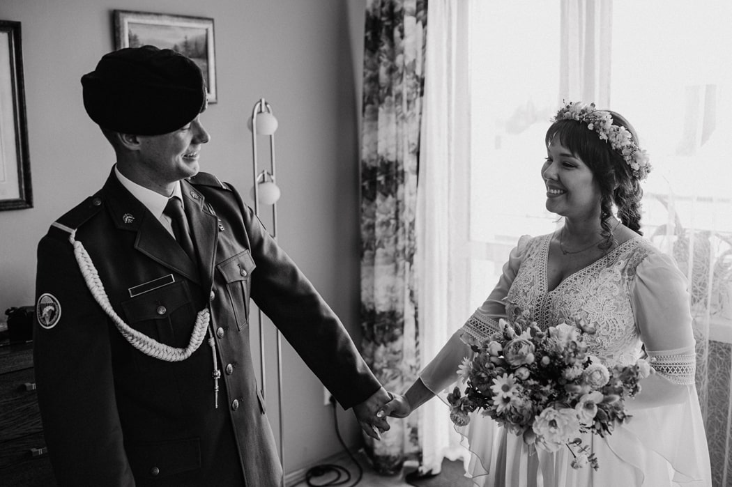 Ślub K i K w Oświęcimiu miał w sobie elegancję, emocje i wyjątkową oprawę. On – w mundurze, ona – promienna i wzruszona. Ich dzień był pełen miłości i emocji. Wesele? Z tańcami do białego rana – dokładnie tak, jak powinno być.